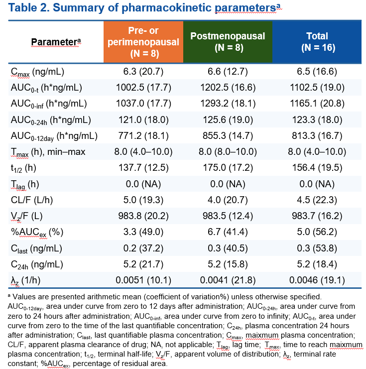 在線壁報展示(192eP)環節中,由東莞市人民醫院關靈教授牽頭的I期研究公佈了HLX78的PK與安全性數據。本研究旨在評價拉索昔芬片在中國健康成人女性受試者中的安全性和藥代動力學特徵,並與既往研究中的白種人和日本人數據進行對比,從藥代動力學角度進一步評估拉索昔芬在不同種族人群(中國人、日本人及高加索人)中的敏感性和 III期關鍵研究(Elaine 3)擬定劑量(5mg)對於中國受試者的合理性,並為拉索昔芬片在中國受試者中的臨床應用给予依據。本研究共入組16名受試者,研究結果顯示,口服單劑量5 mg拉索昔芬片後,絕經前/圍絕經與絕經後人群之間的藥物暴露差異不顯著,與既往研究中的白種人和日本人數據趨勢亦一致,提示種族敏感性風險較低;所有治療期間不良事件(TEAE)均為1–2級,無≥3級不良事件或嚴重不良事件報告,安全性良好。